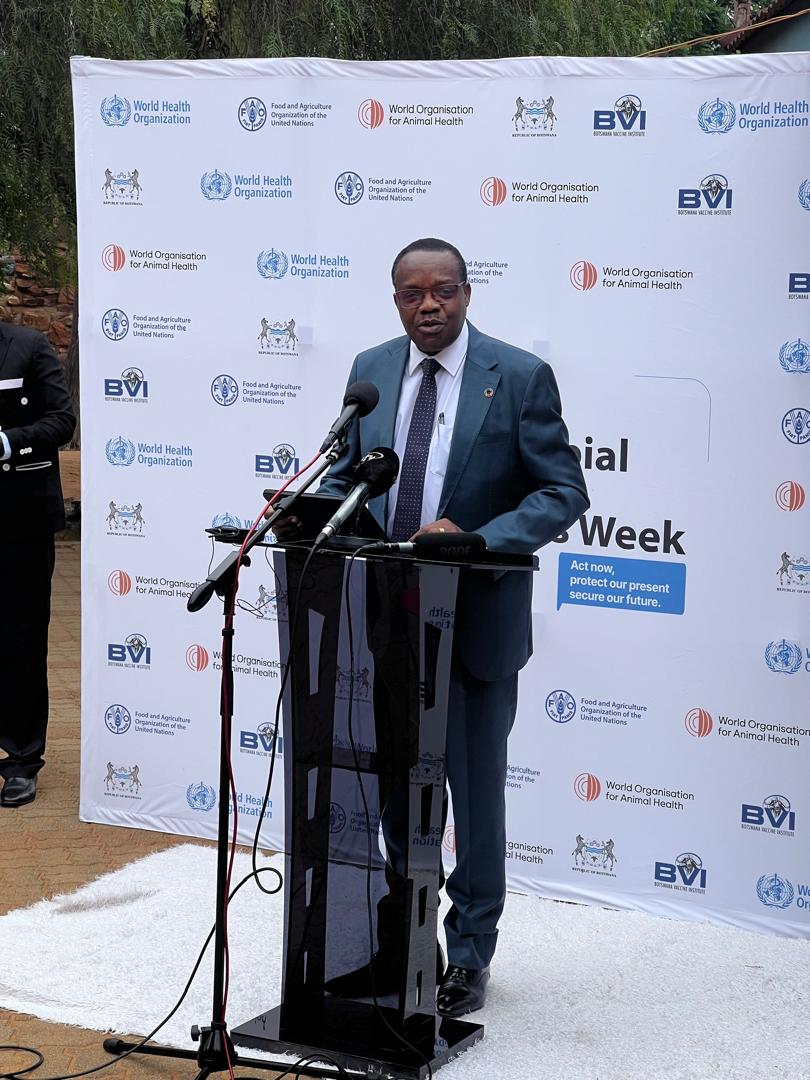 Commemorations were held under the global theme “Act Now, Protect Our Present, Secure Our Future,” aligning Botswana’s campaign with international messaging and momentum. The gathering brought together dignitaries from the quadripartite sectors, global partners advancing the One Health agenda—including WHO, FAO, and WOAH—and local institutions such as the Botswana Vaccine Institute, Botswana Agricultural Marketing Board, and NARDI, alongside school representatives and community members.