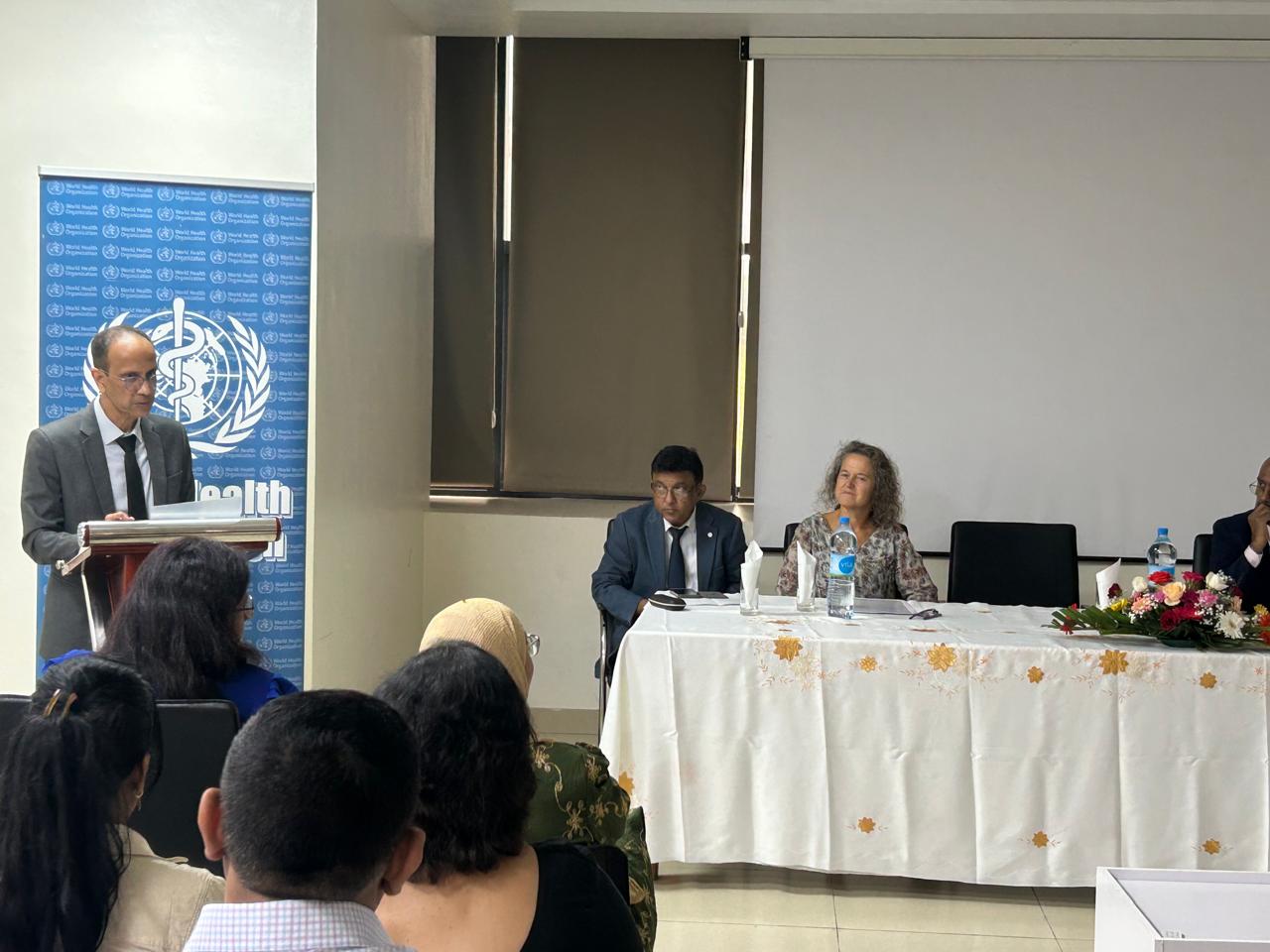 The launch was attended by Mr. Jugmohunsing, Permanent Secretary; Dr. Ancia Anne, WHO Representative in Mauritius; Mrs. Maharaj, Deputy Permanent Secretary; Dr. Sookmanee, Regional Health Director, SAJ Hospital; and Mrs. Gopee, Ag. Director of Pharmacy Services, alongside health professionals from across the sectors.