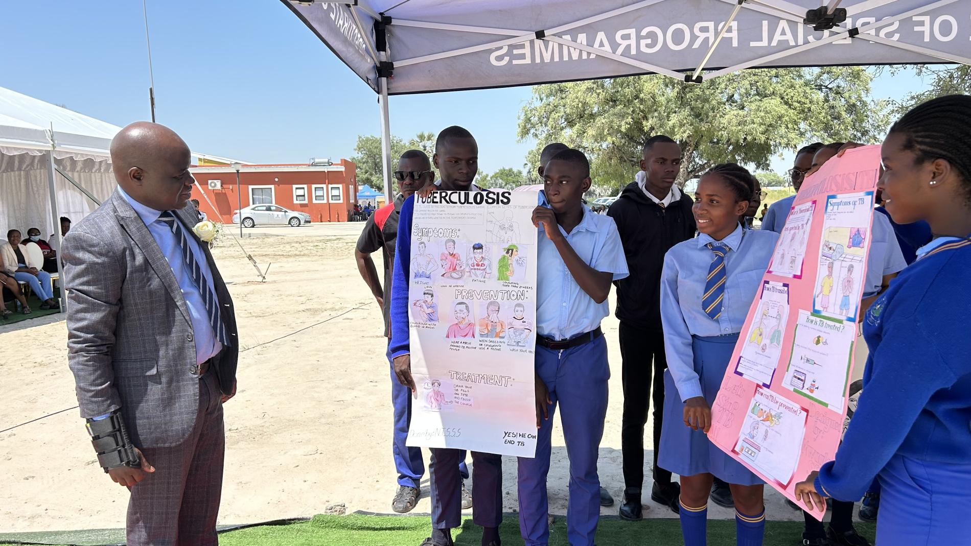 On 28 March 2025, the World Health Organization (WHO), together with the Ministry of Health and Social Services (MoHSS) and other partners, came together for the national observance of World Tuberculosis (TB) Day in Tsandi, Omusati Region. The theme for this year, "Yes! We Can End TB: Commit, Invest, Deliver," served as a powerful reminder of the collective action needed to combat TB worldwide. While World TB Day is globally observed on 24 March, the Namibia observance provided an opportunity to pay tribute to those who have lost their lives to TB and many who continue to struggle with this disease, and to comment on the efforts of all those involved on the ground management of these clients while reflecting on the progress made and the challenges that remain in the fight against this persistent public health threat.