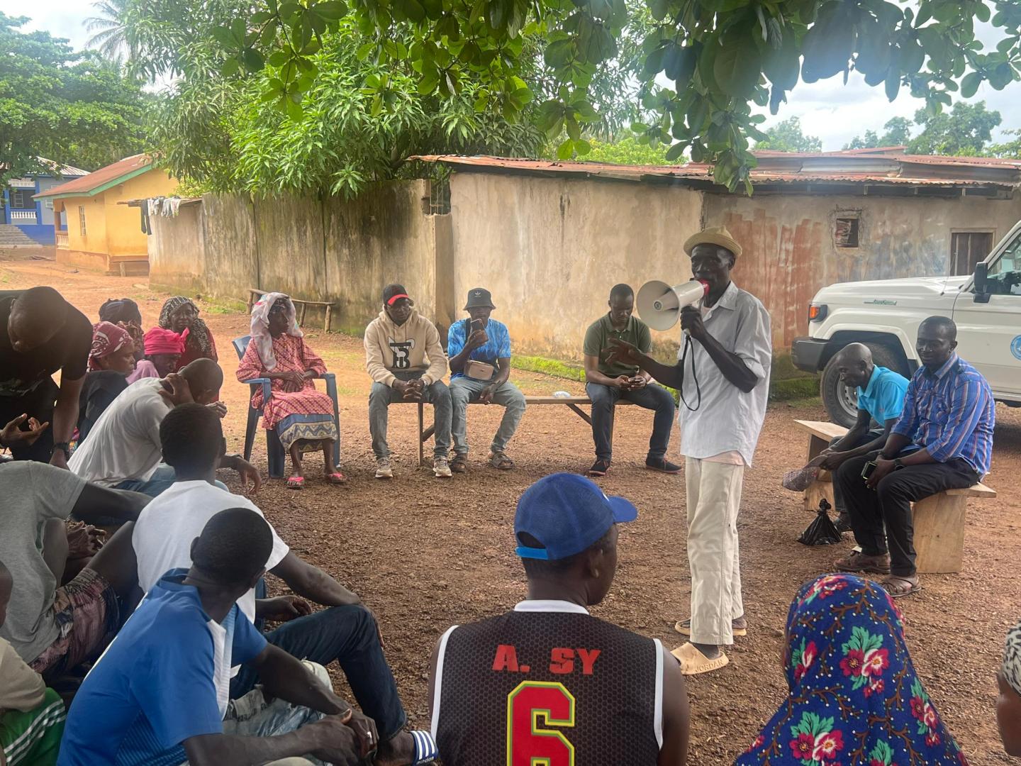 His knowledge is based on training and regular engagement with health partners. “I’ve worked with WHO since the Ebola outbreak in 2015, and again during COVID-19. We’ve also received support from AA2 and UNICEF. They provide training and materials, and we help pass the messages on.”