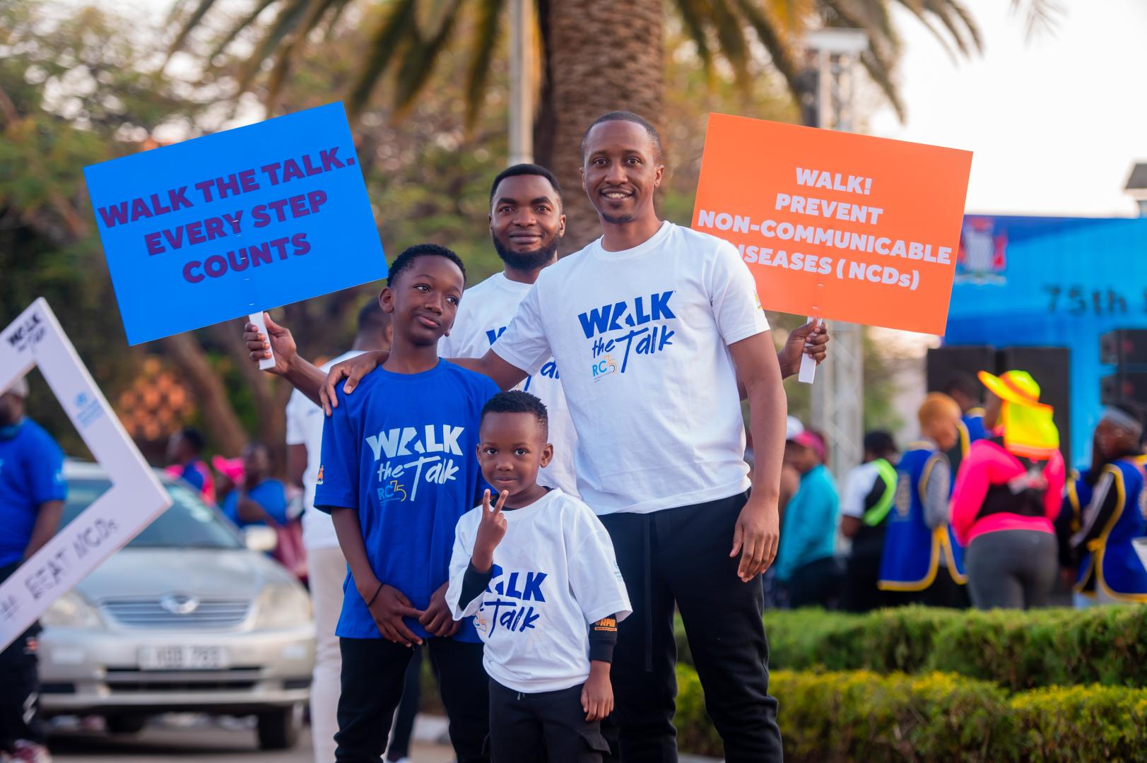 Participants wore branded t-shirts and carried placards bearing health messages such as “Get screened for NCDs regularly” and “Make better food choices.”