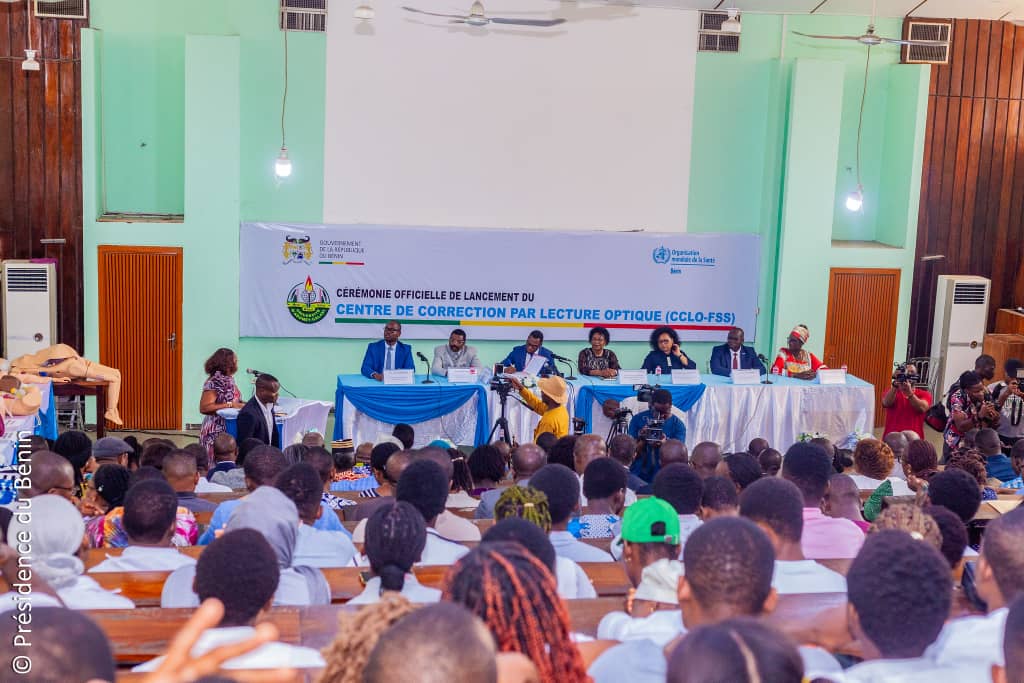 Cotonou, 18 juin 2025 – Une nouvelle ère s’ouvre pour l’enseignement supérieur au Bénin avec l’inauguration du Centre de Correction par Lecture Optique (CCLO) à la Faculté des Sciences de la Santé (FSS) de l’Université d’Abomey-Calavi. Doté d’une technologie de pointe permettant de traiter jusqu’à 7 500 copies d’examen en une heure, ce centre va considérablement améliorer la fiabilité, la rapidité et la transparence de l’évaluation académique. Après Abidjan et Dakar, le Bénin devient le troisième pays d'Afrique de l'Ouest à se doter de cette technologie de pointe. La cérémonie d’inauguration s’est déroulée en présence de personnalités éminentes telles que le Prof. Éléonore YAYI LADEKAN, Ministre de l’Enseignement Supérieur et de la Recherche scientifique, le Prof. Benjamin HOUNKPATIN, Ministre de la Santé, Mme Aurélie ADAM SOULE ZOUMAROU, Ministre du Numérique et de la Digitalisation, et de Prof. Véronique TOGNIFODÉ, Ministre des Affaires sociales et de la Microfinance. Le CCLO est un investissement de l’Organisation mondiale de la Santé (OMS) pour un montant d’environ 100.000 USD.