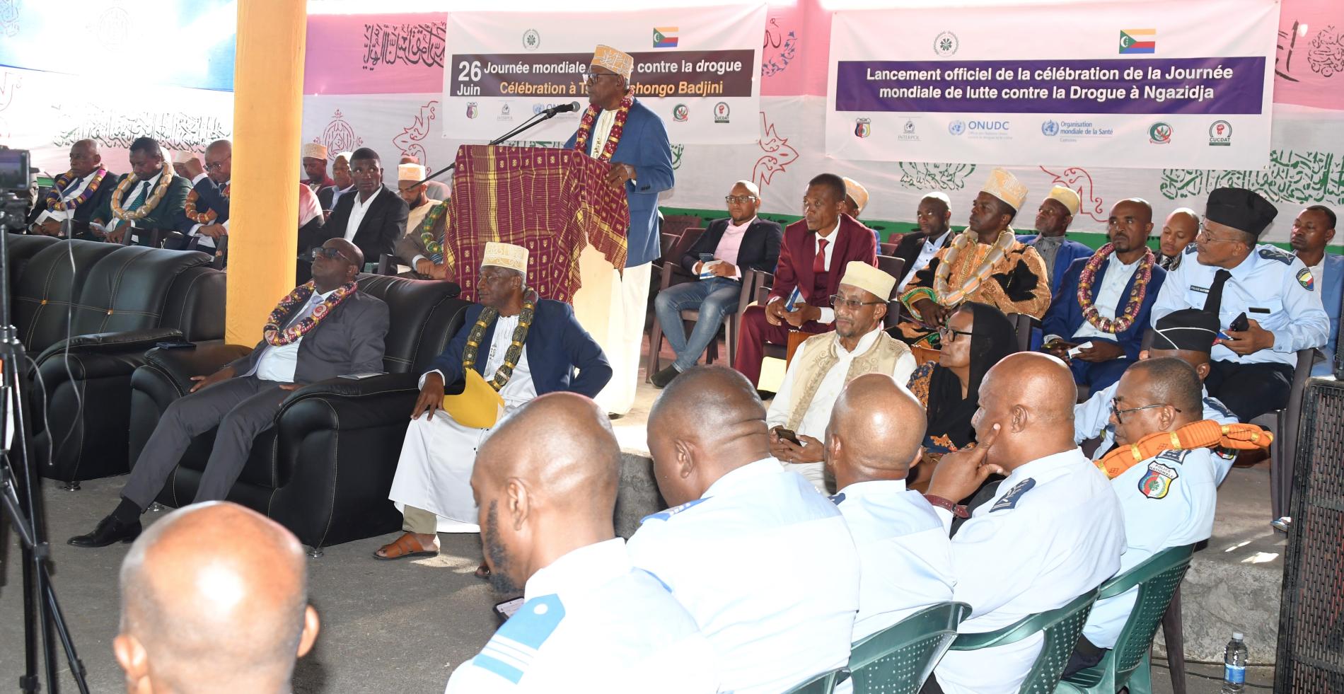 Tsinimoichongo, 26 juin 2025 — À l’occasion de la Journée mondiale de lutte contre la drogue, le village de Tsinimoichongo, dans la région de Badjini, a accueilli la cérémonie nationale, marquée par une forte mobilisation des autorités comoriennes et des partenaires internationaux. Le message était clair : la lutte contre la drogue doit être avant tout une réponse de santé publique.