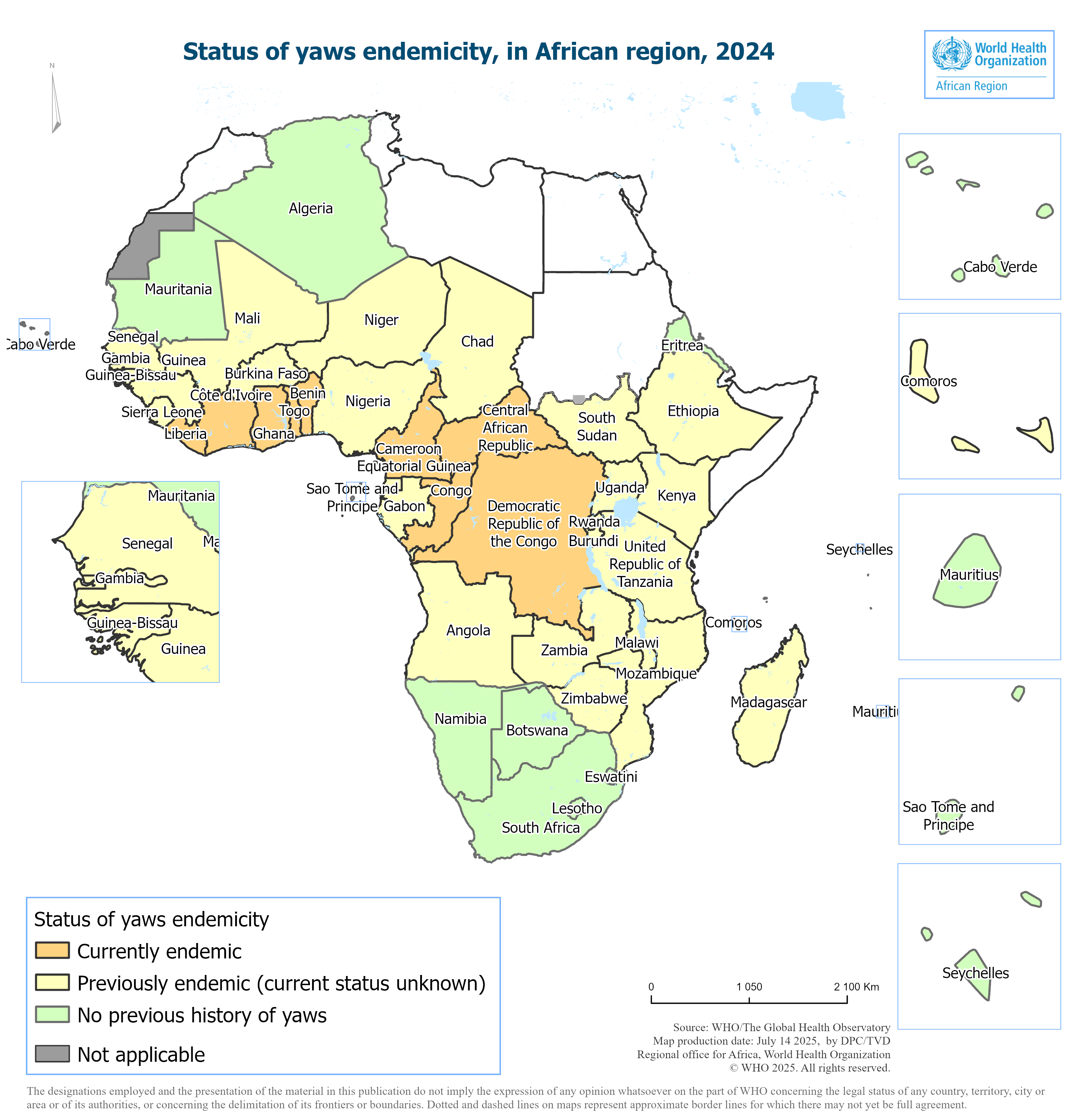 The Yaws epidemiologic situation in 2024 in the Africa region is as follows: