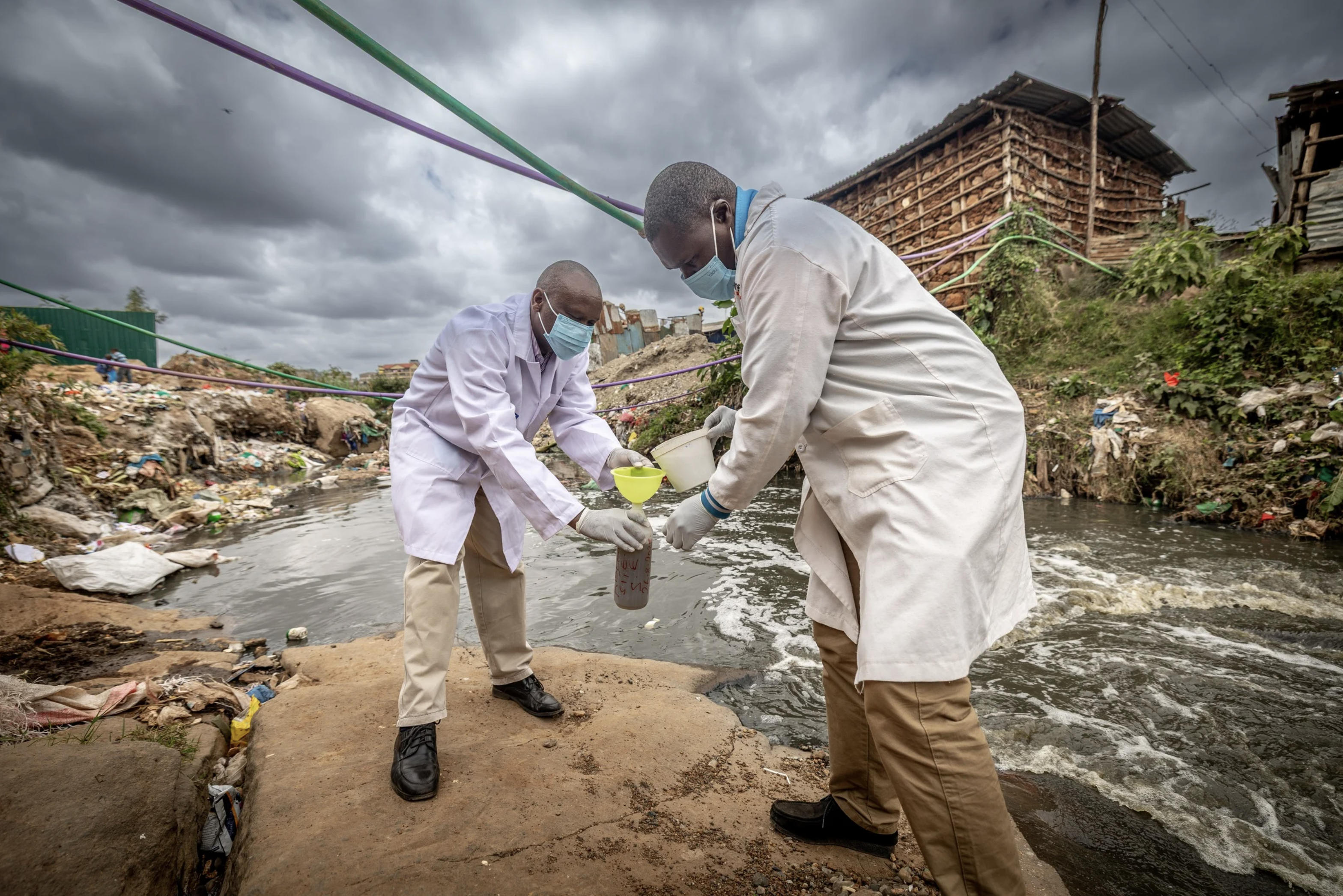 "A few years ago, the Ministry of Health and WHO selected this spot as a collection site. We were involved in choosing the location and trained on safe sample collection," said Peter Adoyo, a community health promoter from Kibera who helps Samuel collect samples each month. "Now we collect samples in the first week of each month and send them to the labs for analysis.”