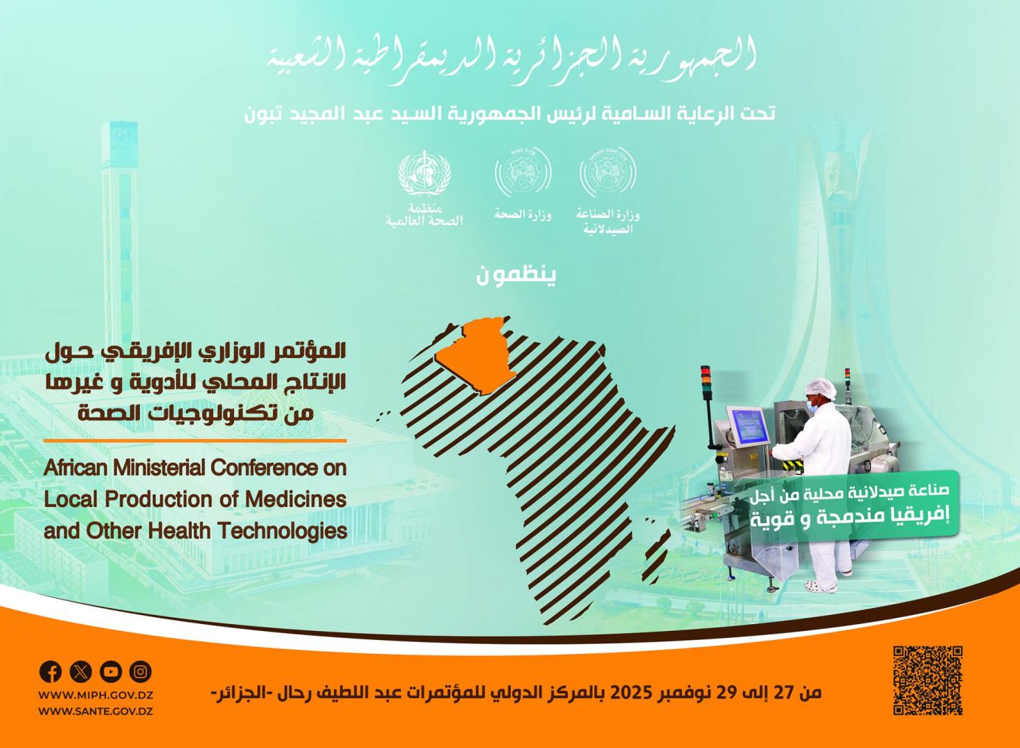 Cet événement continental, placé sous le haut patronage du Président de la République, M. Abdelmadjid Tebboune, est organisé par le ministère de l’Industrie pharmaceutique et le ministère de la Santé, avec la collaboration technique de l’Organisation mondiale de la Santé (OMS). Il illustre l’engagement de l’Afrique à bâtir un continent fort et résilient, dans la protection de ses intérêts et intégré dans son développement.
