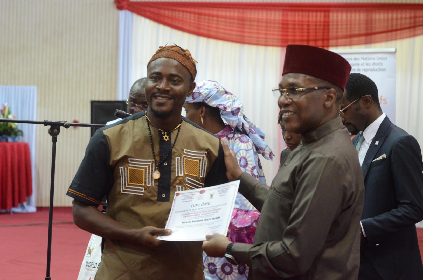 Deux photos, deux diplômes, quatre visages souriants ; Monsieur le Ministre de la Santé Publique, Dr Malachie Manaouda, le Dr Phanuel Habimana, Représentant de l’OMS et deux donneurs remerciés pour donner leur sang depuis au moins trois ans. Des images qui reflètent l’ambiance de la commémoration de la journée mondiale du donneur de Sang au Palais des Sports de Yaoundé, ce 16 juin 2023.