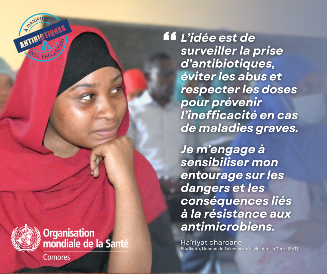 Parmi les participants, Haïriyat Charcane, étudiante en Licence de Sciences de la Vie et de la Terre, a exprimé son engagement : « L’idée est de surveiller la prise d’antibiotiques, éviter les abus et respecter les doses pour prévenir l’inefficacité en cas de maladies graves. Je m’engage à sensibiliser mon entourage sur les dangers liés à la résistance aux antimicrobiens. »