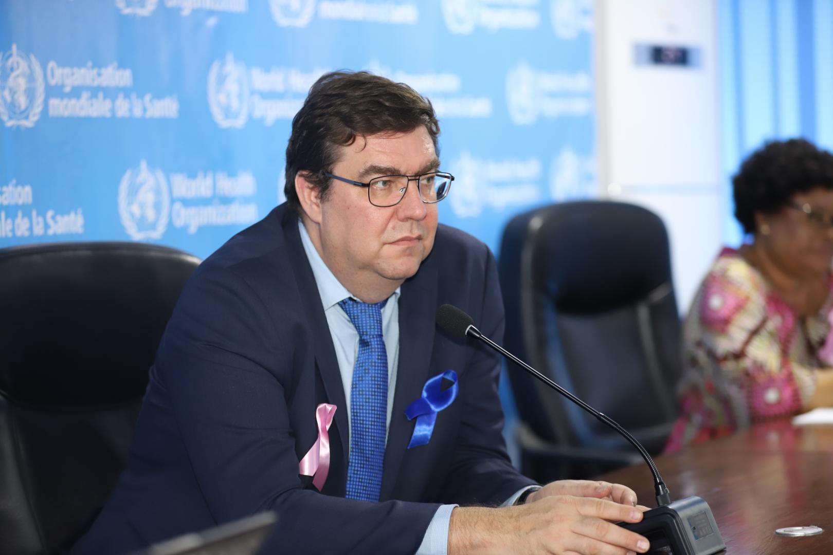 En rose ou en bleu, le personnel de l’OMS en RDC sensibilisé aux cancers du sein et de la prostate