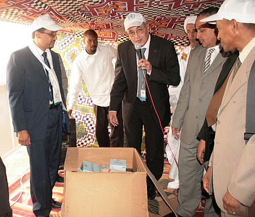 Il a cité en autre la pratique de l’exercice physique et une alimentation saine. Il a encouragé les organisations de la société civiles qui ont contribué à l’organisation de ces activités à continuer à aider les vieux et les personnes vulnérables. Il a enfin remercié les partenaires techniques et financiers particulièrement l’OMS pour l’appui qu’ils apportent au Ministère de la Santé. La remise d’un lot de médicaments, don de l’OMS aux équipes qui vont assurer les consultations aux personnes âgées, démunies avec des visites à domicile dans les quartiers défavorisés durant les deux jours a clôturé la cérémonie de lancement. Les officiels ont ensuite suivi une équipe de médecins qui consultent les personnes âgées du quartier de Tarhil à domicile. Il faut signaler que les participants ont suivi la projection d’un montage de photos réalisé par l’OMS pour illustrer le thème de la journée.