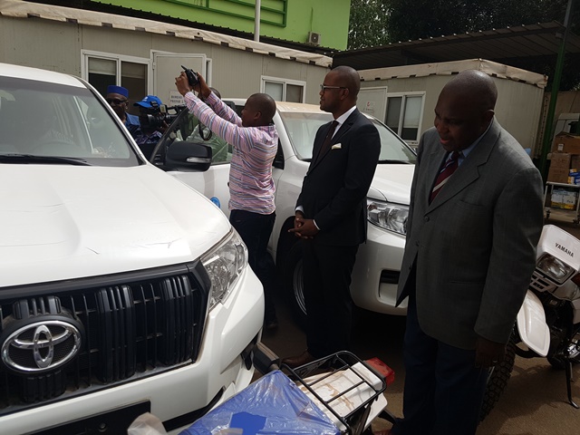 Un premier lot de 20 Véhicules 4 X 4 Pick Up, 02 Land Cruiser et 55 Motos Yamaha DT125 neufs; 32 ordinateurs, des écrans de projection, des téléviseurs, des tablettes et téléphones portables, ainsi que divers autres matériels a été remis au Ministère de la Santé pour l’Agence nationale de la sécurité sanitaire (ANSS.) Ces véhicules, motos et matériels divers sont destinés à l’appui logistique de l’ANSS pour l’amélioration de la mobilité des équipes préfectorales d'alerte et de riposte aux épidémies, ainsi que les Centres d’opération d’urgence dans le cadre du renforcement de la surveillance épidémiologique et de la riposte.