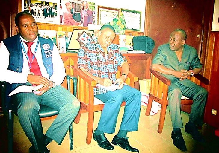 01. De droite à gauche  Le Représentant de l’OMS, le Délégué Régional de la Santé Publique du Littoral et le point focal du sous-bureau OMS de Douala
