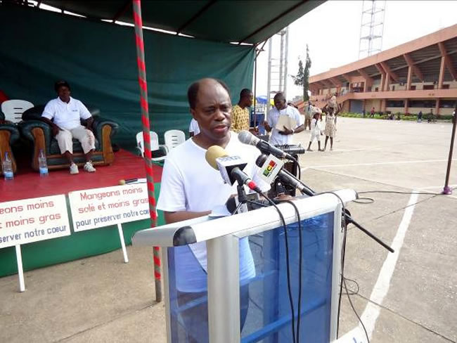 Sur la même lancée, 27% de béninois adultes ont une tension artérielle élevée tandis que 9% de béninois adultes sont à risque du diabète. A l’inverse, 60% des béninois consomment régulièrement des fruits et légumes, ce qui est encourageant. C’est à l’esplanade intérieur du Stade de l’Amitié que l’ensemble de ces allocutions et discours a été prononcé. De cet endroit, le Directeur Adjoint de Cabinet du Ministère de la Santé représentant le Ministre empêché a adressé un message de soutien à tous les marcheurs qu’il a exhortés à poursuivre quotidiennement cette activité dont l’objectif principal est de maintenir le coeur en bonne santé. Dr Moufalilou ABOUBAKAR a précisé que plus d’un (1) béninois sur quatre (4) souffre d’hypertension artérielle selon l’enquête STEPS réalisée en 2008 par le Ministère de la Santé avec l’appui technique et financier de l’OMS au Bénin.