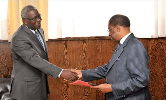 Kinshasa, 03 avril 2012 République Démocratique du Congo (RDC) -- Le Représentant de l’OMS en République Démocratique du Congo, le Dr Léodégal Bazira a officiellement remis le mardi 03 avril 2012 ses lettres de créance à Son Excellence Alexis Thambwe Mwamba, Ministre des Affaires étrangères de la RDC. Le Dr Bazira était accompagné du Dr Brigitte Kini, en charge du Programme de la Promotion de la Santé et de M. Pierre Claver Lessimi, Administrateur du Bureau de l’OMS en RDC.