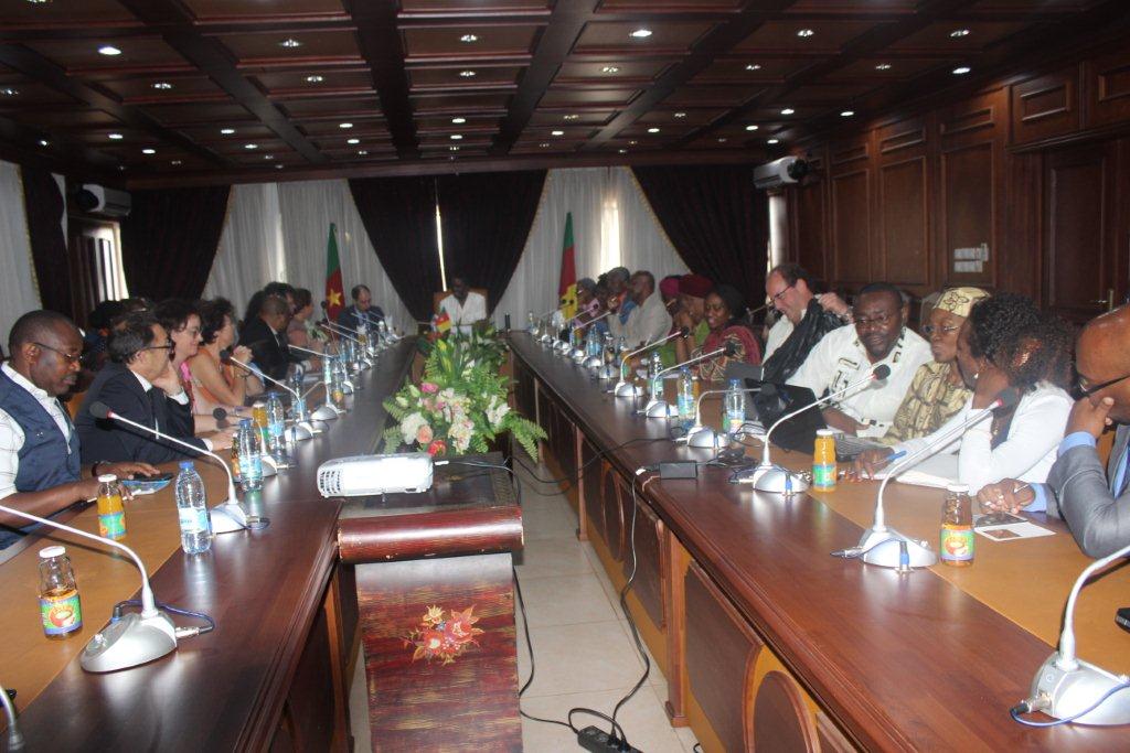 Au vu du travail abattu, Le Ministre de la Santé Publique a exprimé sa satisfaction et ses remerciements à la délégation conduite par le Représentant de l’OMS au Cameroun, le Docteur Charlotte Faty Ndiaye, et comprenant les divers partenaires nationaux de santé (UNICEF, BM, CDC, UE, Pasteur, MSF, IMC, IFRC, ESTHER, CARE notamment), ainsi qu’aux responsables du Ministère de la Santé et du Ministère de la Communication présents. La présentation faite par le Docteur Stella Chungong au nom de toute l’équipe a relevé les forces et faiblesses de la préparation du pays et les mesures à prendre à court terme pour y remédier, à la lumière de la checklist de préparation récemment confectionnée par l’OMS. Elle a notamment souligné que les descentes sur le terrain au centre d’isolement des cas suspects de l’hôpital Central de Yaoundé, au Centre Pasteur, à la Centrale Nationale d’Approvisionnements en Médicaments Essentiels, à l’Aéroport International de Yaoundé et au Centre de prise en charge de Yaoundé à Mimetala, ont permis de constater que certaines des mesures mises en place sont effectives, mais qu’il est indispensable de les améliorer, et de mettre rapidement en place celles qui ne le sont pas encore. Des échanges ont suivi, dont il est ressorti que l’OMS et les partenaires continueront d’appuyer l’amélioration de la préparation, afin que le pays soit prêt à faire face à l’infection à la maladie à virus Ebola le cas échéant.