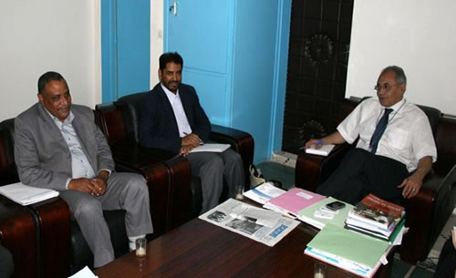 Le Dr. Baptiste Jean Pierre, Représentant de l’OMS en Mauritanie a reçu ce Jeudi 14 avril 2012 dans le cadre des rencontres périodiques avec les responsables du Ministère de la Santé le Dr. Niang Saidou Doro, Directeur de la Lutte contre la Maladie au Ministère de la Santé entouré de ses principaux collaborateurs. Etaient présents du côté de l’OMS à cette rencontre le Dr. Yacoub Ould Ahmedou, DCP, le Dr. Boubacar Ould Abdel Aziz, ATM et Mr. Medellah Ould Bellal, HIP.