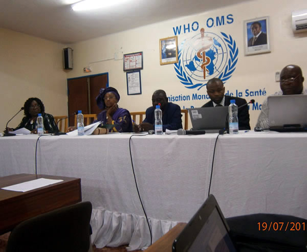 Dans l’après midi du jeudi, toujours en compagnie du Représentant de l’OMS, Dr Fatoumata Binta Tidiane et du Dr Michel Yao, conseiller au département de la Gestion des Risques et de la Réponse humanitaire au siège de l’OMS à Genève, Dr Anyangwe a assisté à la réunion du cluster santé, qui se tient tous les jeudis après midi sous le leadership de l’OMS. Le cluster santé regroupe les deux Ministères en charge de la santé et de l’Action Humanitaire et l’ensemble des partenaires techniques et financiers, les ONG et associations intervenants dans le domaine de la santé. Au menu des échanges, la situation humanitaire et sécuritaire, la situation du choléra qui sévit présentement au Mali, le plan de contingence pour faire face à la crise, le paludisme et la vaccination dans les régions du nord.