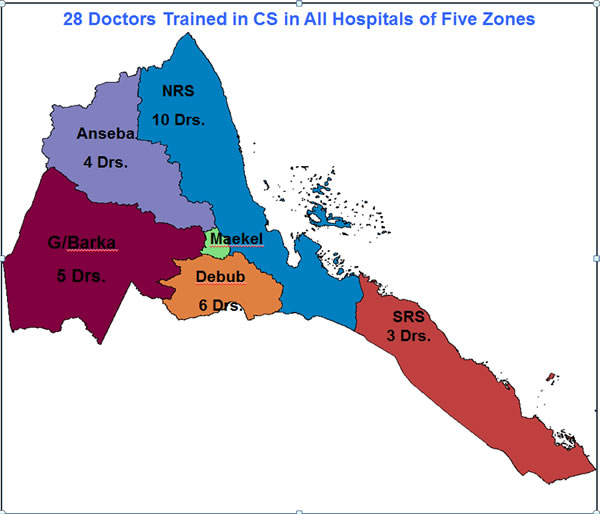 In line with the priorities set out by the task force, to address the identified capacity gaps, the Ministry of Health in collaboration with the WHO Country Office in Eritrea has trained 28 doctors in the provision of comprehensive emergency obstetric and neonatal care (C-EmONC) in eight rounds starting from December 2010 to date.