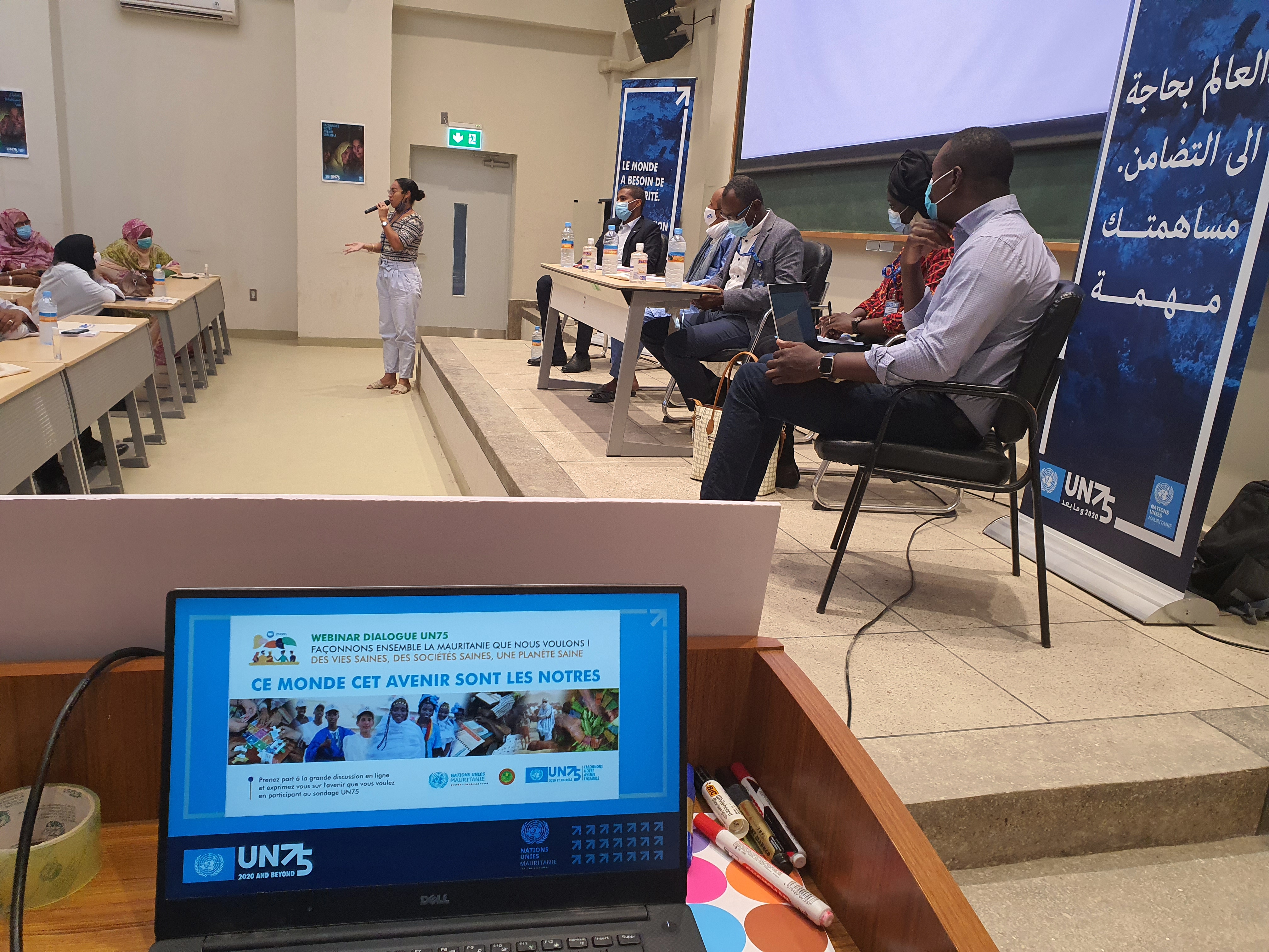Le dialogue organisé par le HCR et l'OMS dans le cadre des célébrations du UN75 fût l’occasion pour discuter avec les étudiants (mauritaniens et réfugiés en Mauritanie) de leur perception du monde qui viendra, du rôle des citoyens ainsi que de celui des Nations Unies dans la construction de l’avenir que nous voulons, notamment à la lumière des événements récents liés à la pandémie de la COVID-19.