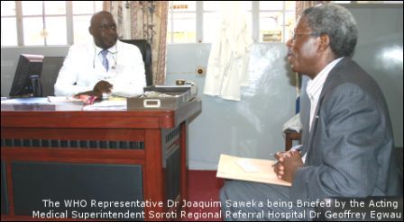 The WHO Representative for Uganda Dr Joaquim Saweka paid a two-days working visit to Soroti district, Eastern Uganda to check on the implementation of the Making Pregnancy Safer (MPS) project that was initiated by WHO and the Ministry of Health.