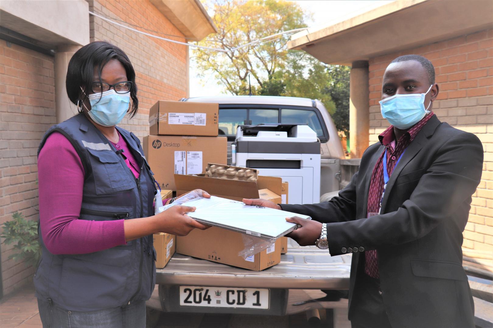 Harare, Zimbabwe - The World Health Organization (WHO) Zimbabwe, with financial assistance from the United Kingdom's Department for International Development (DfID), handed over office equipment worth $12,390 to the City of Harare’s new Emergency Operations Centre (EOC) stationed at Wilkins Infectious Diseases Hospital. Wilkins Infectious Diseases Hospital, is the main COVID-19 isolation center for Harare.