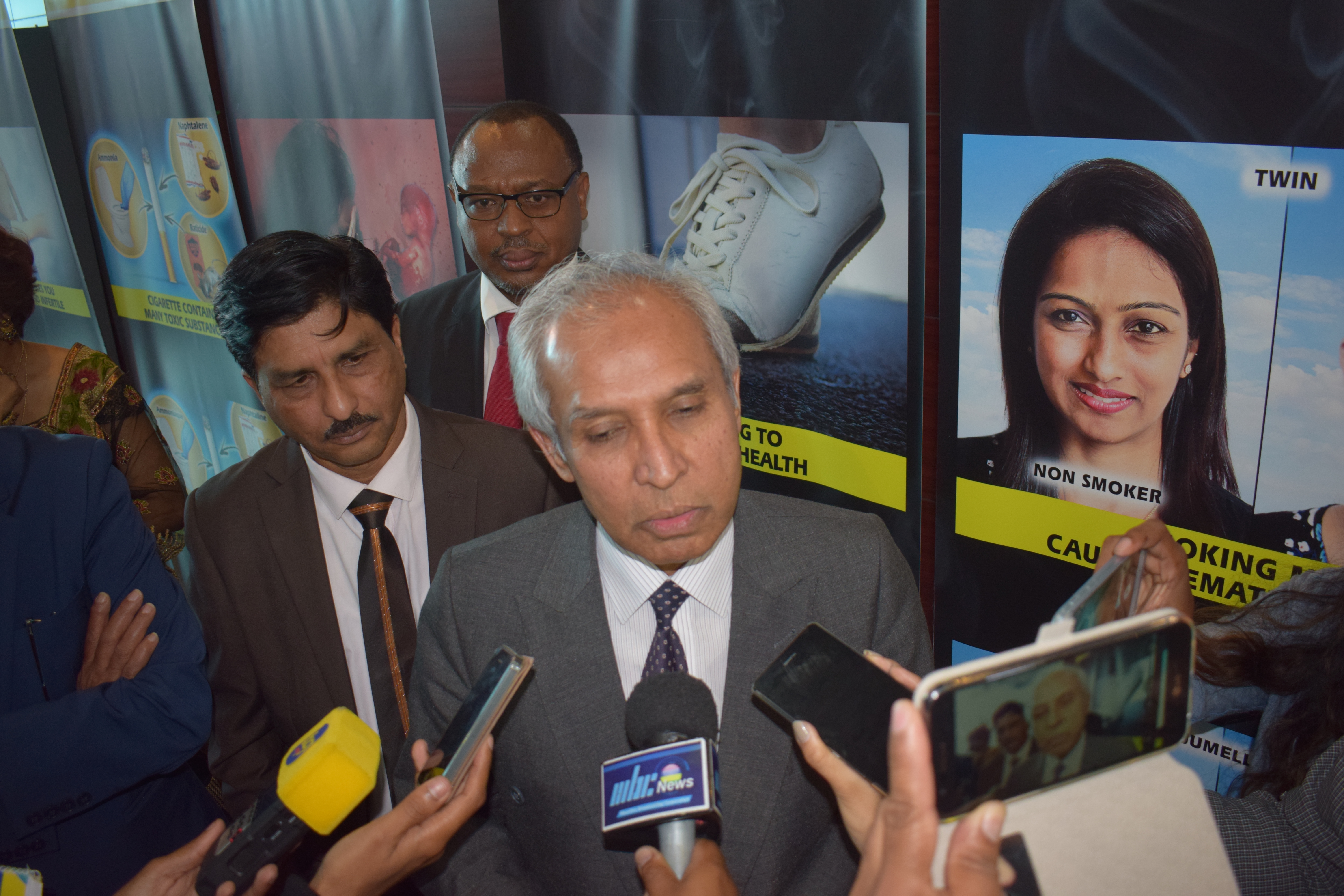 ‘Just imagine the quality of life of a person who happened to get a stroke following tobacco smoking’, said Honorable Dr A. Husnoo. According to the Mauritius Non-Communicable Diseases Survey carried out in 2015, the prevalence of smoking among people aged 20 to 74 has decreased from 21% in 2009 to 19% 2015. Figures obtained from the Mauritius Revenue Authority indicate a reduction in the importation of cigarettes in Mauritius from 1, 3 billion cigarette sticks in 2009 to 992 million sticks imported in 2017. The Health Minister pointed out that tobacco kills 1000 people yearly in Mauritius and there are many people who suffer from tobacco-related diseases.