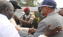 1. The Hon Minister of Health, Dr Riek Gai Kok, Dr Abdi Mohamed, WHO Representative and Dr Barnbas, UNFPA Representative welcoming the President to Wau Teaching Hospital