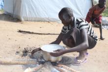 Awel Wech Ayom recovered from Hepatitis E Virus and has resumed her life. Here she helps to prepare a meal for her mother and siblings.