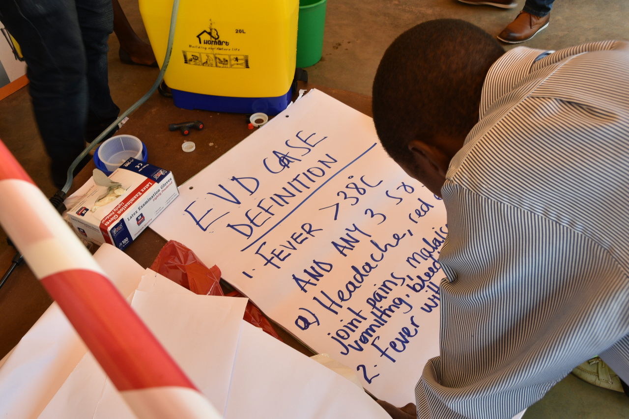 A replica of an Ebola Treatment Unit (ETU) was set up and health workers went through the steps of responding to a viral hemorrhagic fever outbreak. They covered coordination and communication, contact tracing, social mobilization, laboratory investigation and sample transportation, isolation and transportation of the patient, treatment and safe burial.