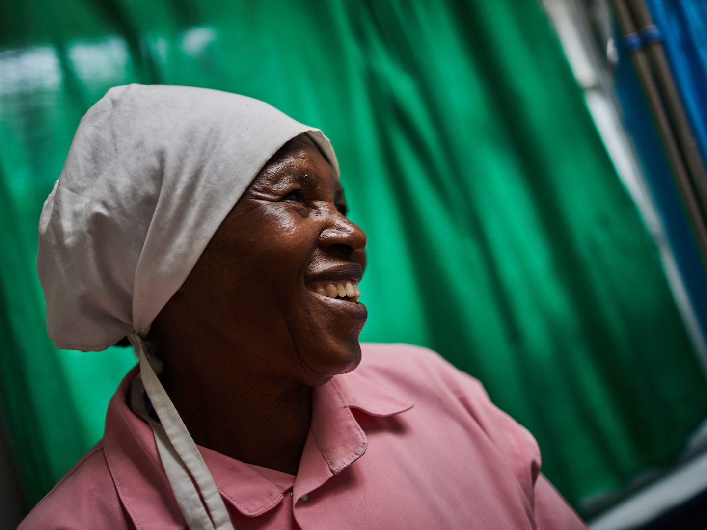 The happy outcome of Kavugho’s hospital stay is a tribute to the more than 70 health workers employed there, who, in the past year as part of the Ebola response, received training on infection prevention and control. Helene Masika (above) is a midwife and says that newborn babies need to be especially protected from infection because of their fragility.