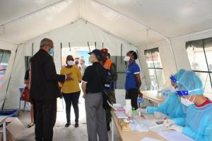 Representante da OMS acompanha o Senhor Ministro da Saúde e da Segurança Social numa visita às tendas de testagem ràpida de COVID-19 na Cidade da Praia, Cabo Verde
