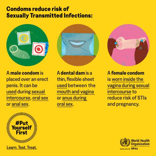 - Always using a condom properly during any sexual activity