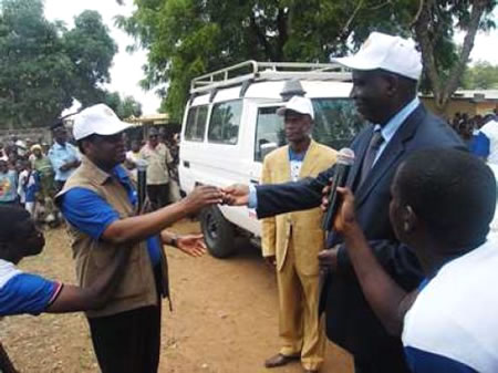 Le Représentant de l’OMS a remis au Ministre de la santé un véhicule 4x4 pour la supervision des activités de lutte contre le paludisme dans ce district.