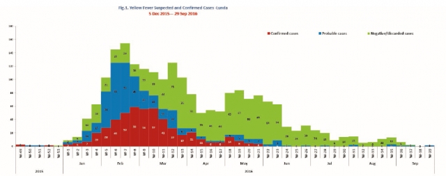 Three positive laboratory cases were reported in Porto Amboim district (Cuanza Sul) and Chongoroi (Benguela); cases are being investigated and post-reviewed by the Classification Committee. The population of Porto Amboim district have not been vaccinated to date but included in the next phase of vaccination campaign starting October 10th, 2016.