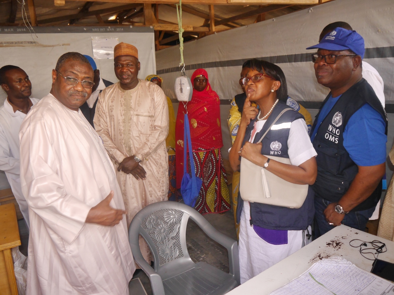09. La Directrice Régionale et le Ministre de la Santé écoutant les explications de la sage-femme du centre de santé de refugié à Assaga Diffa